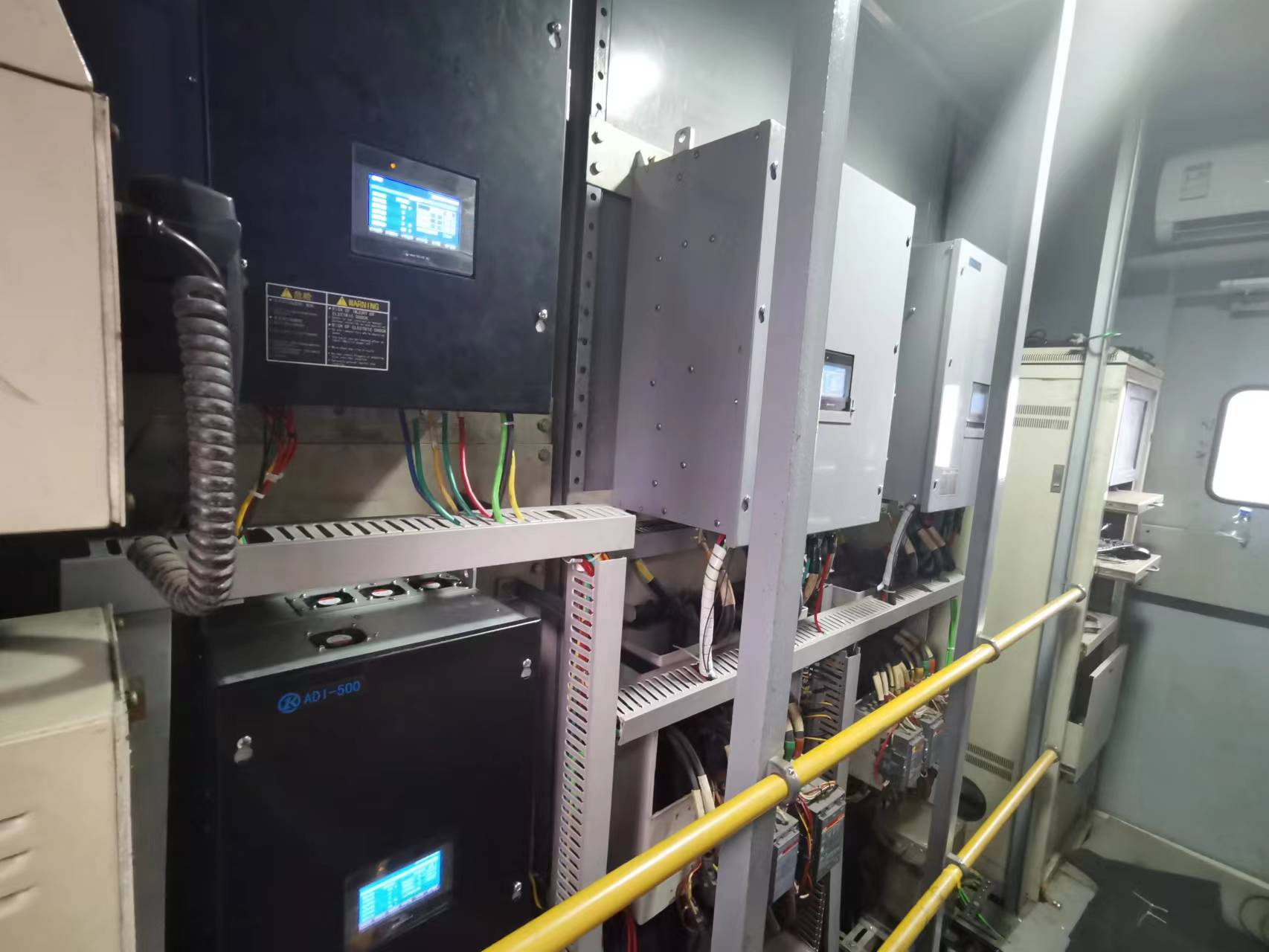 2021年,客戶方通過江蘇海洋大學找到我司董事長譚國俊教授,希望以礦井大功率電控提升技術見長的中礦傳動能幫助他們解決當前問題。我司接到請求后,迅速派人前往現場進行技術論證,隨后成立了以譚國俊教授為組長的科研團隊,經過半年的科技攻關,一舉研發(fā)出ADRI系列小功率高性能變頻器,并開始在現場進行調試。調試完成后,試驗各項性能指標均優(yōu)于日本原品牌產品,設備使用節(jié)能效果顯著,性能大幅提升,操作簡單便捷,使用率一舉成為該公司場橋設備的前列。經過客戶近半年的持續(xù)使用,對項目改造改造效果非常滿意,如期召開了本次驗收會。